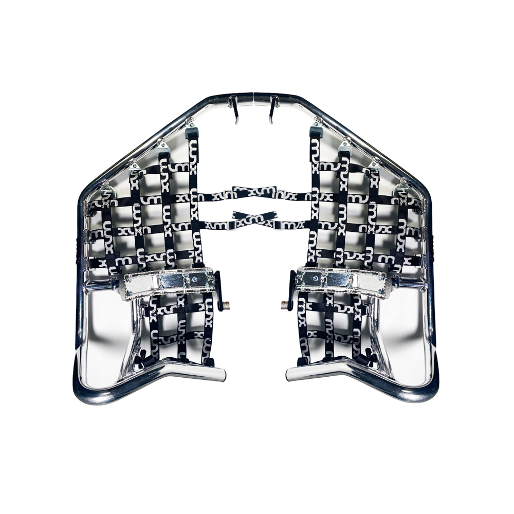 Équipement de sécurité obligatoire sur piste, avec pegs antidérapants extra-larges intégrés, remplaçant les repose-pieds d’origine.